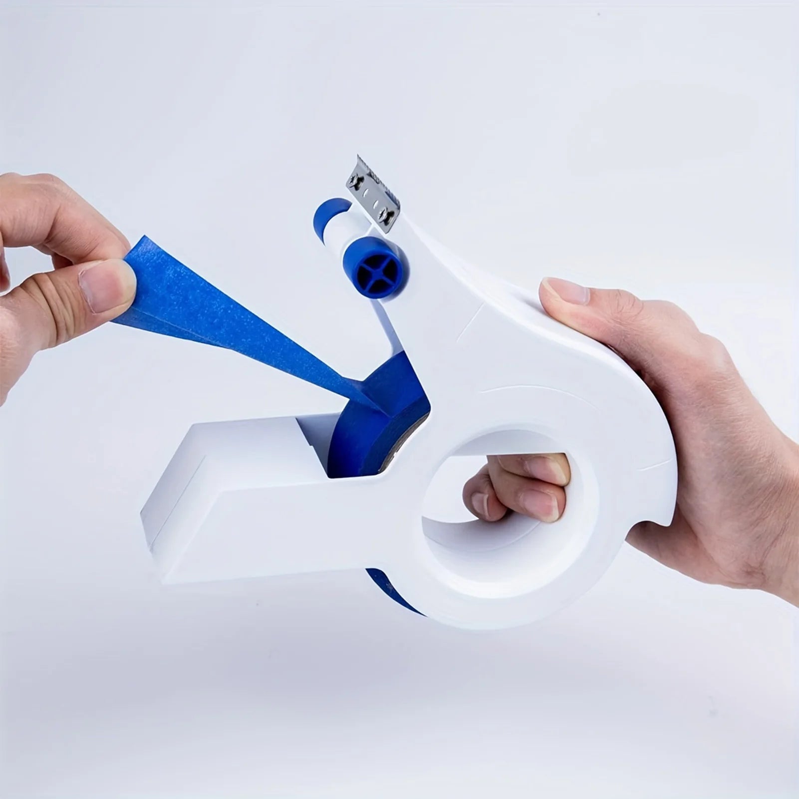 Compatible with standard 1.88" to 2" × 60-yard tape rolls, this dispenser allows easy one-hand operation, making it ideal for packaging, shipping, wall masking, and floor protection tasks. The built-in sharp blade ensures clean and quick cuts without the need for scissors.